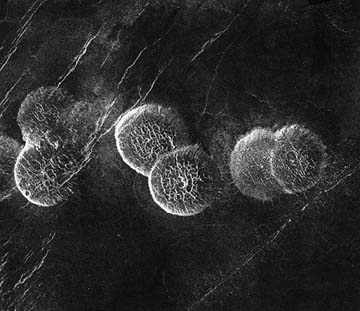 In the early 1990’s a team of researchers from JPL, led by Ellen Stofan, asked me to be a part of a NASA Venus Data Analysis Program grant to study the origin of steep-sided domes on Venus. Also known as “pancake domes”, these huge flows have a planform that looks like someone tossed gigantic (15 miles across) pancakes made of lava all over the planet. In 2000, we published the most comprehensive analysis of the formation of these features to date in the Journal of Geophysical Research, and this work is still cited frequently today (See Stofan et al., 2000 in Publications).